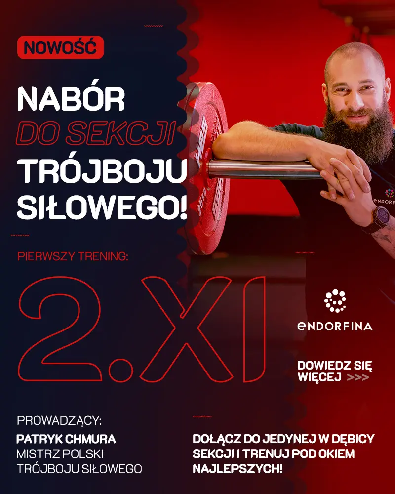 Jesteś zainteresowany dołączeniem do sekcji i rozpoczęciem swojej przygody z trójbojem siłowym? Zgłoś nam swoje zainteresowanie w wiadomości prywatnej, a my umówimy Cię na konsultację z trenerem i pierwszy trening!